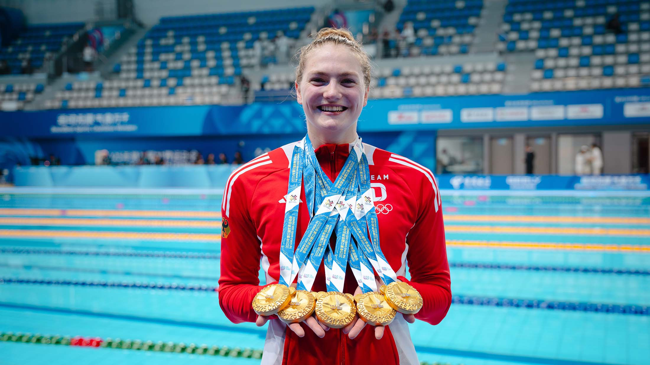 Nina Holt hat 2025 ein weiteres überaus erfolgreiches Jahr in ihrer sportlichen Laufbahn erlebt. Die 22-Jährige von der DLRG Harsewinkel gewann im August bei den World Games 2025 in Chengdu (China) insgesamt fünf Goldmedaillen, zwei davon im Einzel und drei in Teamwettbewerben. Damit zählte sie zu den erfolgreichsten Athletinnen der gesamten Spiele. Bereits bei den World Games 2022 (fanden coronabedingt ein Jahr später als geplant statt) in Birmingham hatte sie im Alter von nur 18 Jahren vier Mal Gold errungen. Mit inzwischen neun Goldmedaillen zählt Nina Holt bei den Word Games zu den erfolgreichsten Athleten aller Zeiten. Lediglich der deutsche Flossenschwimmer Jürgen Kolenda, der in den 80er Jahren elf Siege feierte, steht noch vor ihr.